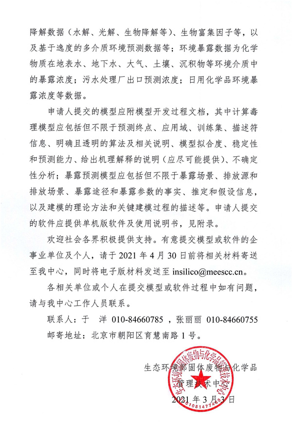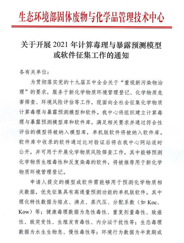 關(guān)于開展2021年計算毒理與暴露預(yù)測模型或軟件征集工作的通知