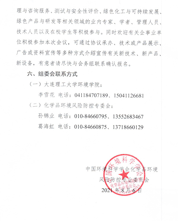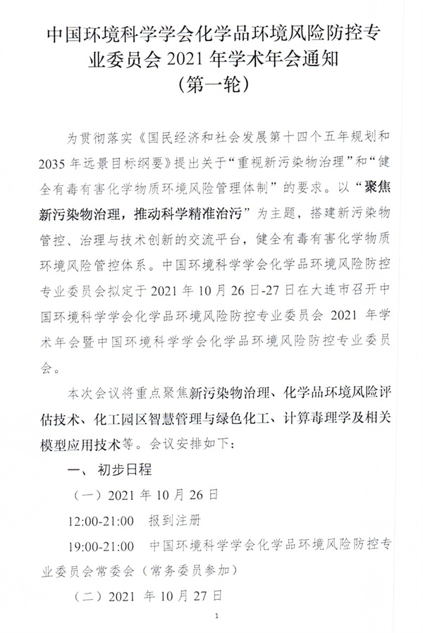 中國環(huán)境科學(xué)學(xué)會化學(xué)品環(huán)境風(fēng)險(xiǎn)防控專業(yè)委員會2021年學(xué)術(shù)年會通知